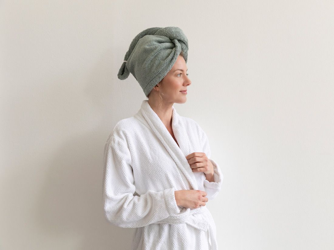 La serviette cheveux de Yumeko est faite en 100 % coton biologique qui n'a jamais été en contact avec des pesticides ou d'autres produits chimiques nocifs et qui est donc propre, sûr et respectueux de la peau. Il respecte les exigences strictes de la norme Global Organic Textile Standard (GOTS). Vous avez ainsi la garantie que votre linge de toilette est 100 % écologique, de la graine de coton au fil, et du fil à la serviette. C'est mieux pour vous et pour la planète.
